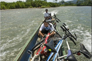 Lisandro Diaz is Juan's father and he was also on hand during that initial delivery of bikes to Coroma. He made a living transporting folks across the Telire, and was happy to lend a hand (and boat) to help bring bikes to his community. Like his son, Lisandro eyed his bike right away. He planned on using it to get to his boat for work and also to travel the great distances between banana farms.