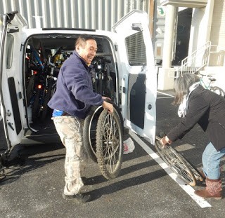 Joe got the word out this year that he was making the trip and had a little mini collection before he came. His rented truck was stuffed to the grill with bikes from friends, neighbors and local bike shops lending a hand to his cause. He brought spare parts and tires, the works! This guy is a true class act, and a huge barrel of fun to be around.