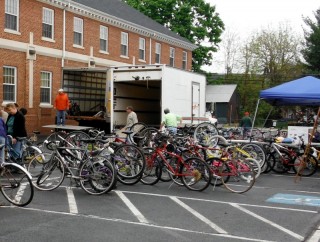 Assuming April 28th (the day of the Otterbein collection) yields another 200 bikes, we are extremely fortunate that we were able to grab the 200 at M.S. Johnston already earlier this year...or they would not have all fit in the truck. Not that that hasn't happened before; Otterbein typically gets between 200-300 bikes every year, but one year they did top 400...and our biggest rental truck doesn't quite hold 300 bikes.