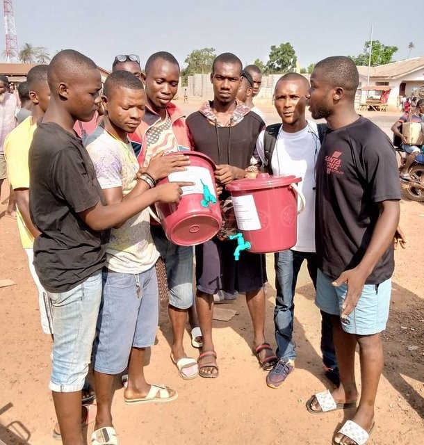 This is when Karim jumped into action. Through a generous donation from BfW mega-supporter and previous board member Hellen Gelband, Karim was able to purchase nearly 100 of these hand washing stations that he distributed to seven communities surrounding Freetown. He mobilized a team to help deliver these water buckets by bicycle, quickly reaching the more remote villages. They also delivered soap, gloves, and valuable information about coronavirus symptoms and how the virus spreads.